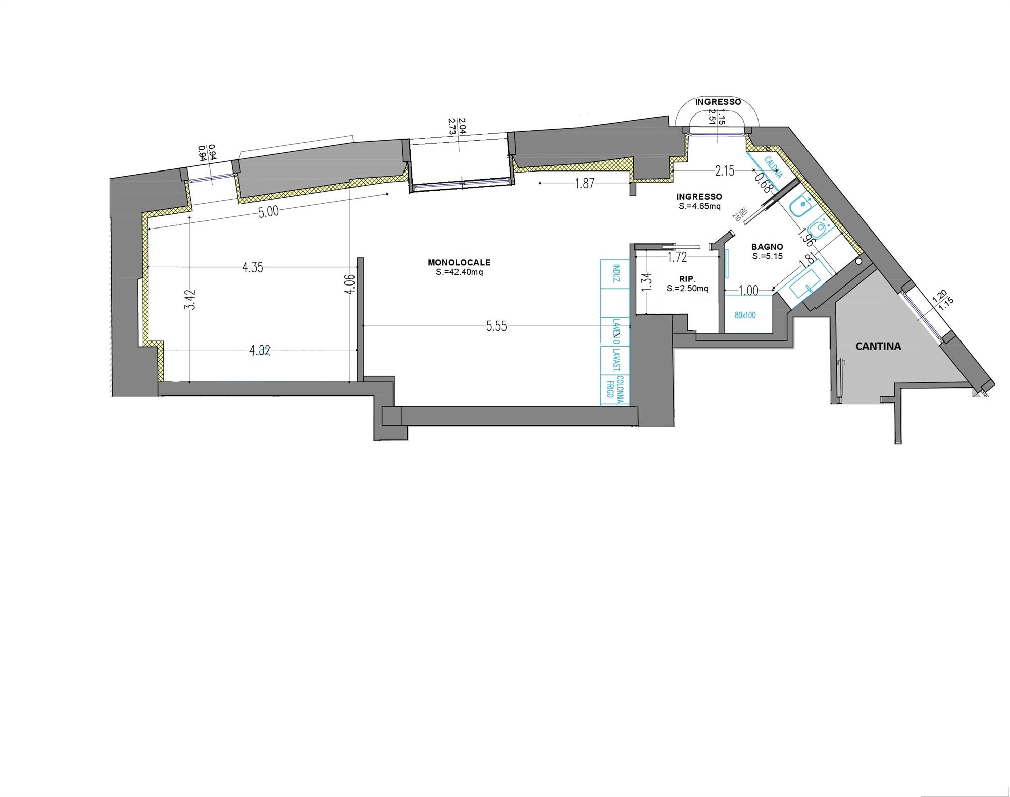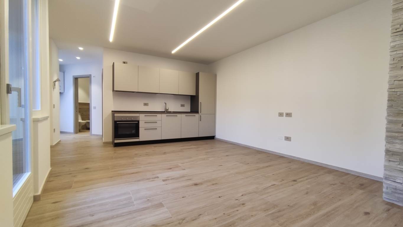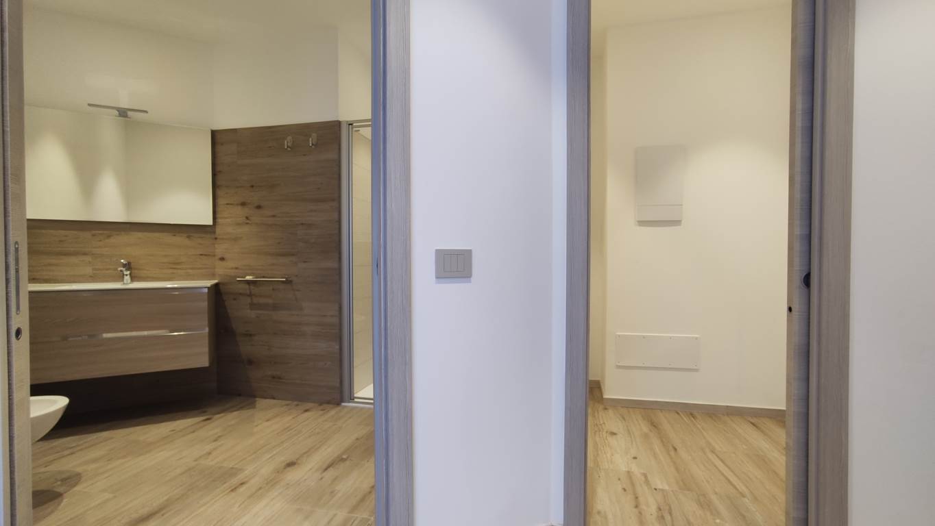 Immobile appena completato e mai abitato, prevede un accesso a piano strada direttamente da Piazza Italia, ed è composto da atrio d'ingresso, splendida zona giorno con tripla finestra e vista sulla piazza, con accesso ad un grazioso spazio esterno, zona notte divisa dalla zona giorno tramite parete divisoria ad altezza parziale, bagno con doccia, e comodo ripostiglio ripostiglio con carico/scarico per lavatrice e asciugatrice.