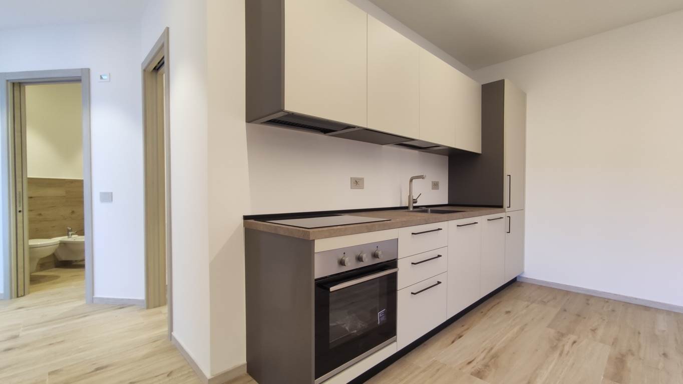 L’appartamento è parzialmente arredato con angolo cottura con forno e piano a induzione, frigorifero, ed arredo bagno, tutti arredi nuovi; i rimanenti arredi a cura dell’affittuario. Ottimo impianto di riscaldamento a pavimento con caldaia autonoma a condensazione; spese condominiali minime (circa 100 Euro/anno)