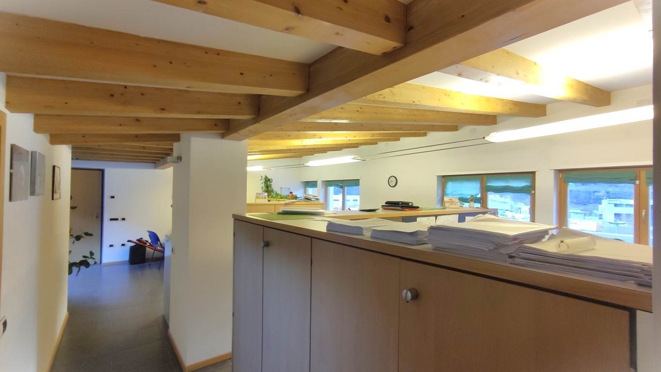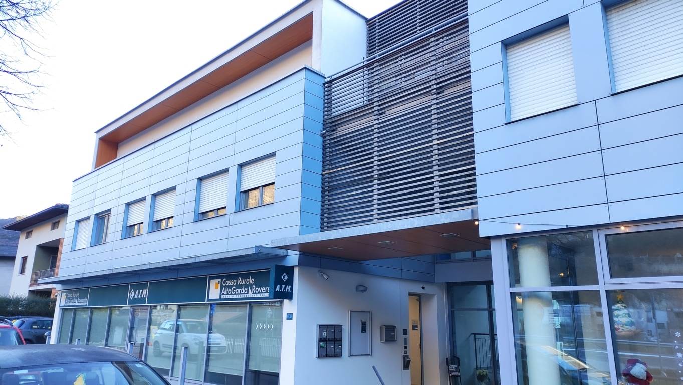 Vezzano, a 15 km da Trento e 25 da Arco e Riva del Garda, in zona di forte passaggio affacciata sulla strada statale, affittasi recente ufficio a secondo e ultimo piano di 120 mq lordi, con terrazzo, due balconi, garage e parcheggi.