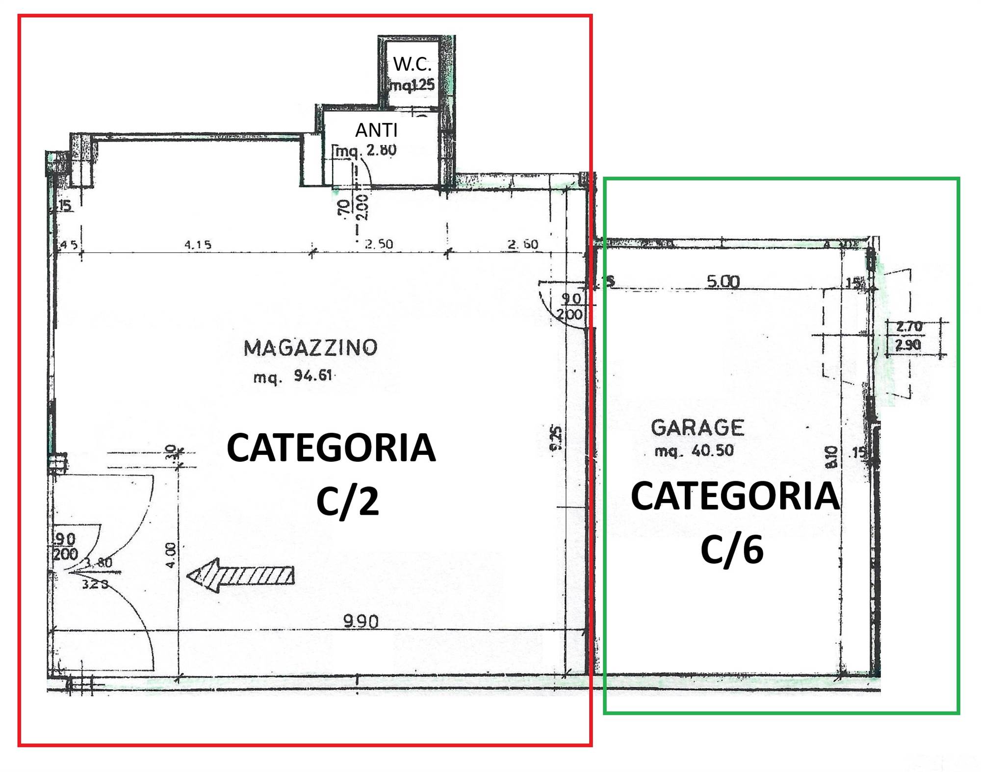 - Garage (accatastato come C/6), open space con dimensione di 40 mq utili. con accesso dal lato opposto dall'interrato del condominio, altezza 3.20 metri