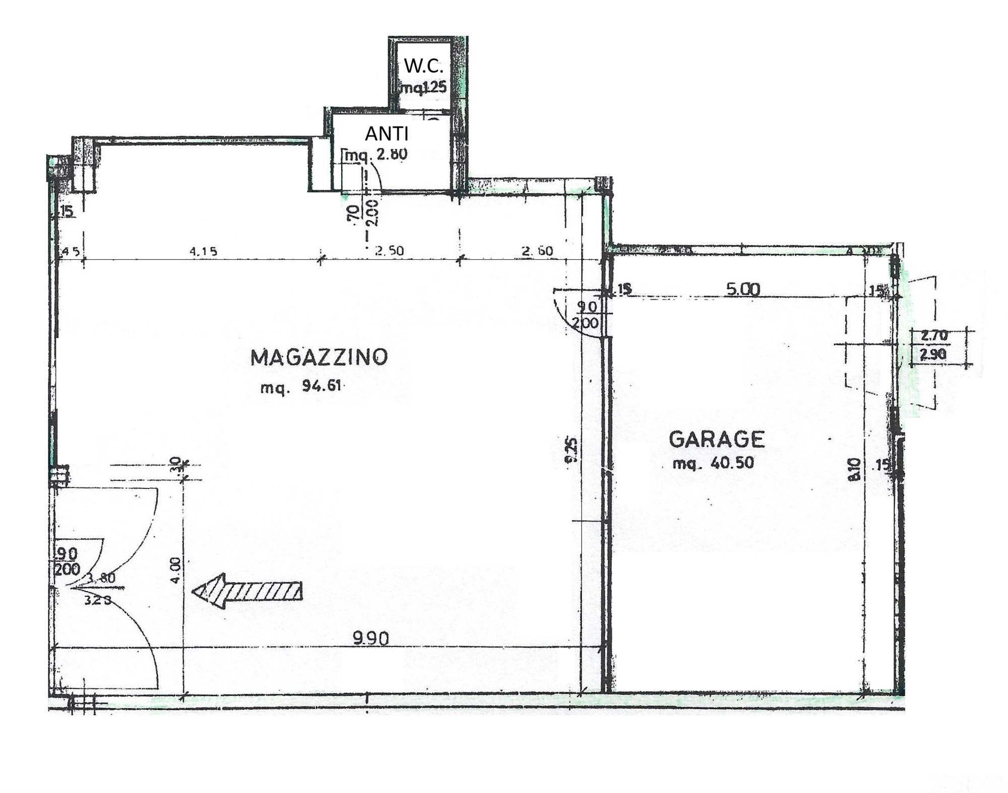 - Magazzino (accatastato in categoria C/2) locale di 94 mq netti a open space + antibagno e bagno; accesso indipendente dalla rampa verso il Lung'Adige con basculante motorizzato, altezza 3.20 metri