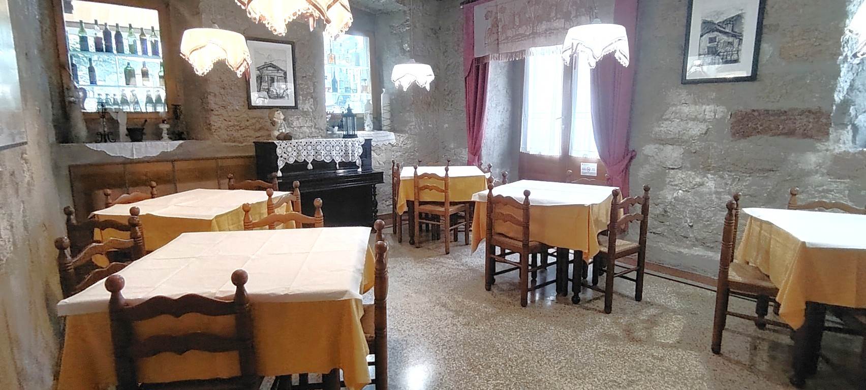 La parte esterna è prevalentemente occupata dalla sala ristorante in veranda con un camminamento esterno sul lato sud, ed un ulteriore spazio a deposito. A completare la proprietà, una soffitta nel sottotetto di 20 mq.