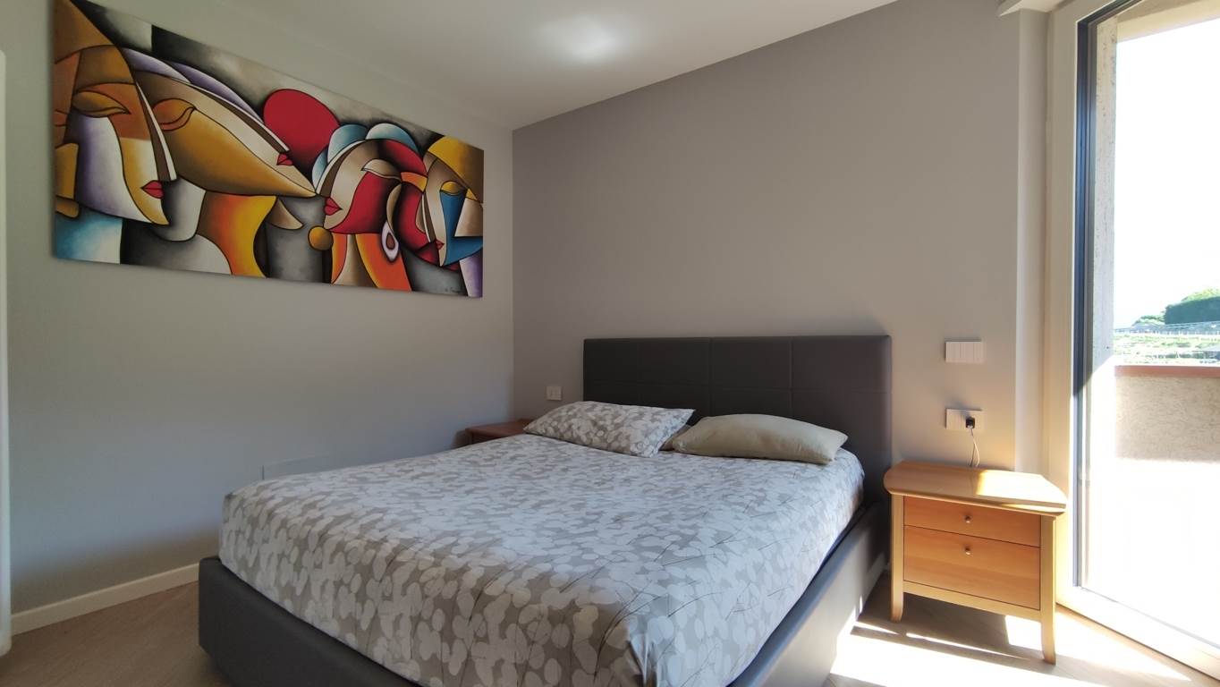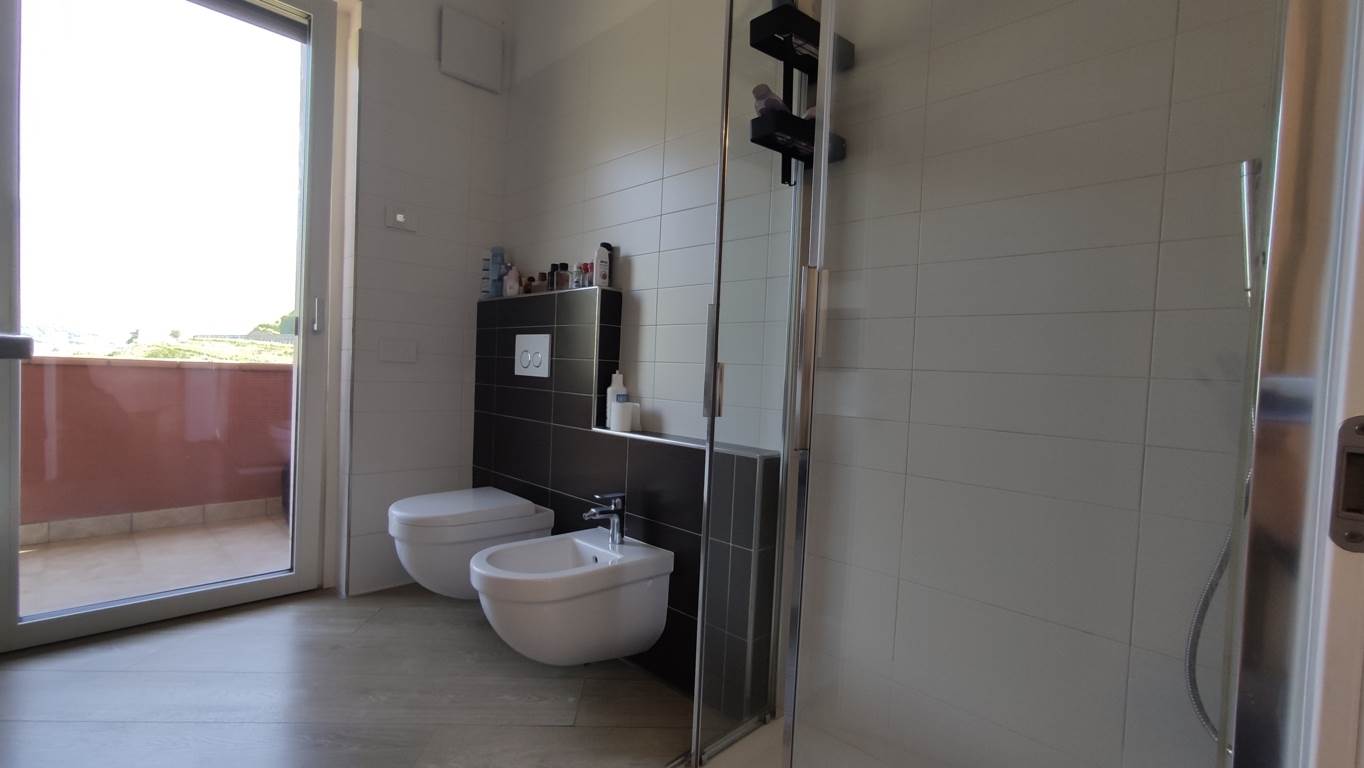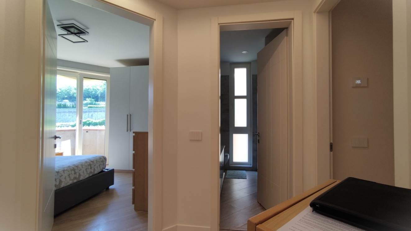 L’appartamento è composto da ingresso, luminoso soggiorno con angolo cottura e splendido balcone rivolto a sud sul verde condominiale; il disbrigo collega la stanza da letto matrimoniale con balconcino, il primo bagno finestrato e la seconda stanza da letto doppia (questi due locali hanno accesso al balcone nord aperto sulle campagne circostanti), il secondo bagno finestrato e la terza stanza da letto doppia.